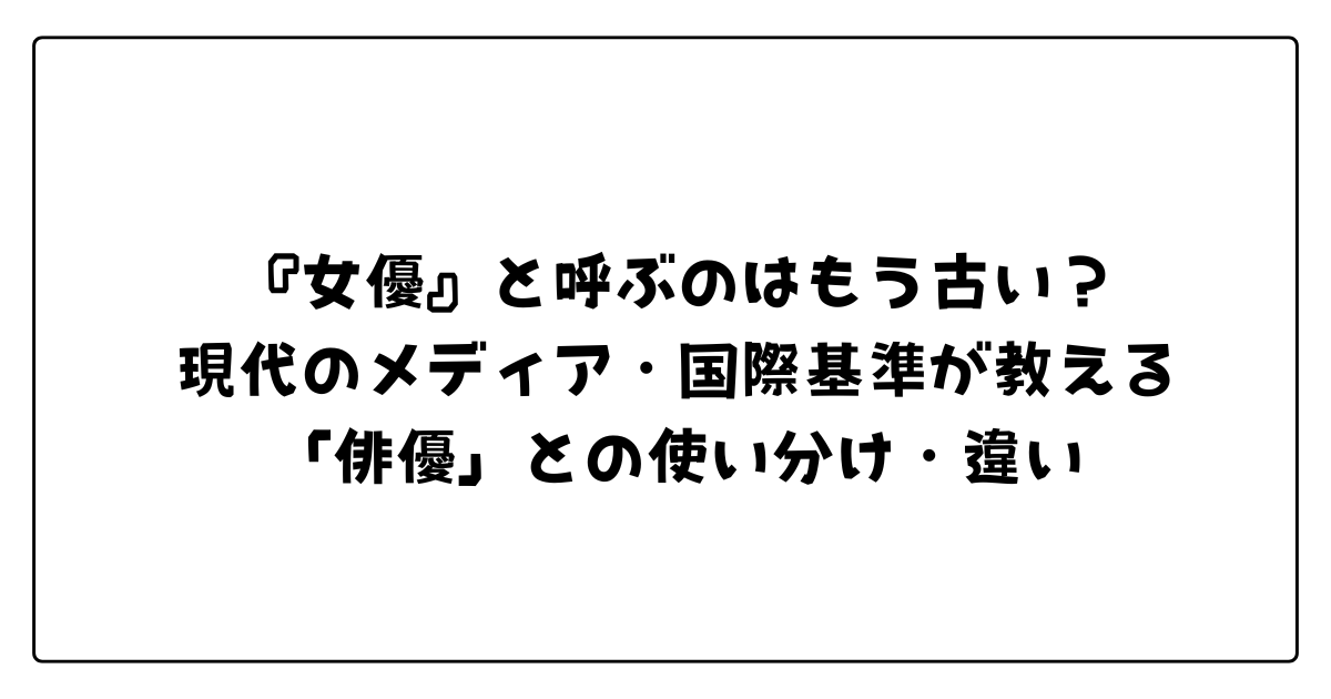「WEBメディアの記事の中で『実力派女優の〇〇さん』と書きかけたとき、ふと指が止まったことはありませんか? 最近ニュースで耳にする『主演俳優賞』という響き。今、あえて『女優』と書くことは時代遅れなのか、それとも誰かを不快にさせてしまうリスクがあるのか……。その微かな不安、情報発信の最前線で働くあなたにとって、非常に大切な感覚です」