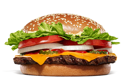 バーガーキングの代名詞「ワッパー(とてつもなく大きい、という意味)」に、コクのあるチェダーチーズを合わせた人気No.1の絶対的エースです。