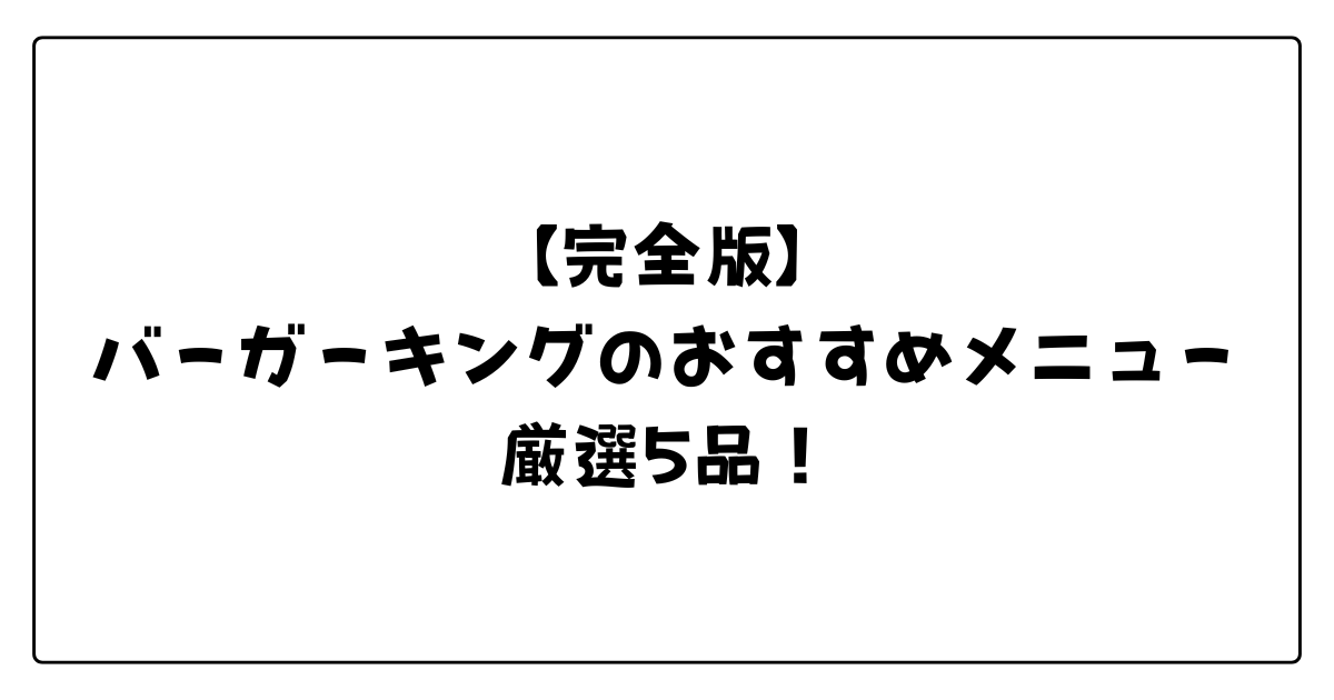 バーガーキングのおすすめメニューと楽しみ方をまとめます。