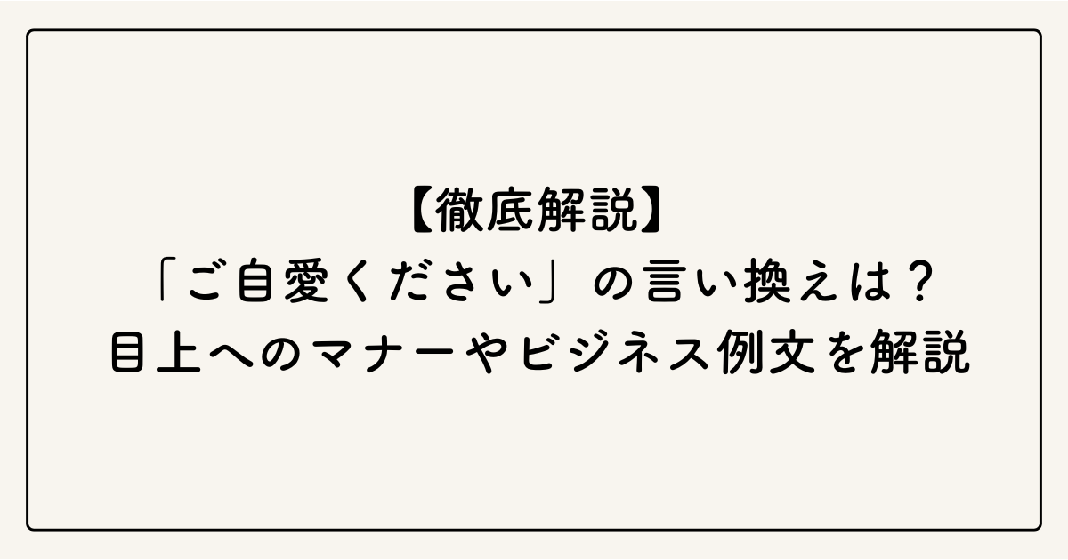 「ご自愛ください」の正しい意味とは?ビジネスで役立つ言い換え表現・例文・マナーを徹底解説