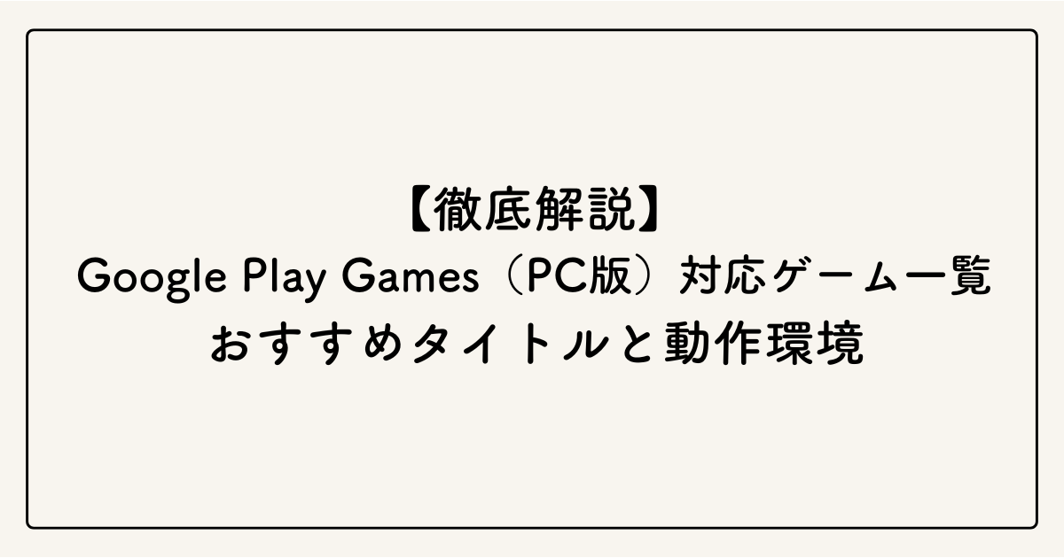 Google Play Games(PC版)対応ゲーム一覧|おすすめタイトルと動作環境を徹底解説