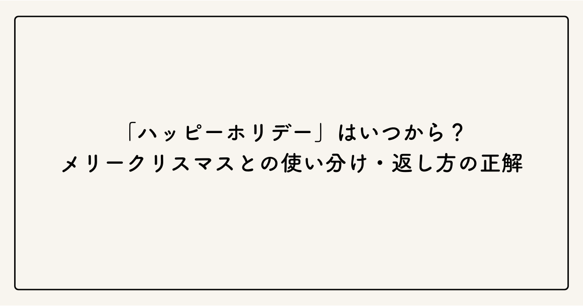 「最近はメリークリスマスって言わない方がいいんだっけ?」「ハッピーホリデーって、いつからいつまで使うのが正解なの?」