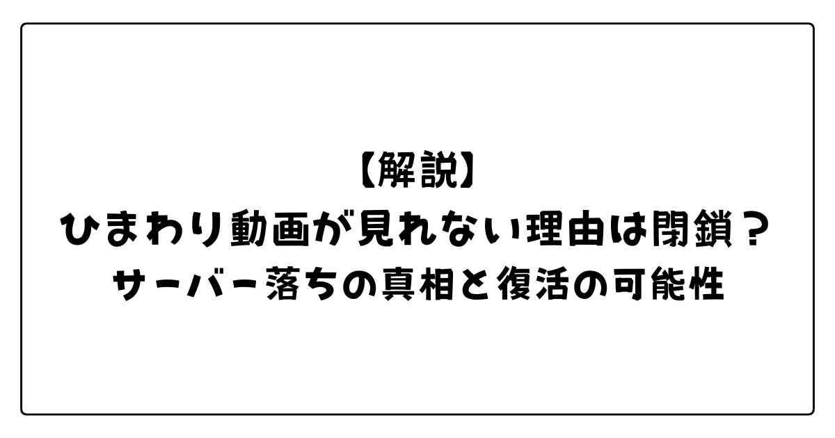 この記事では、ひまわり動画が現在見れなくなっている本当の理由として推測される要因や、過去のサーバー障害との違い、そして今後の復活の可能性について客観的な視点から解説します。