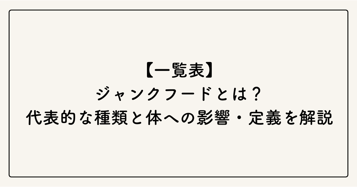 ジャンクフードの一覧と定義についてまとめます。