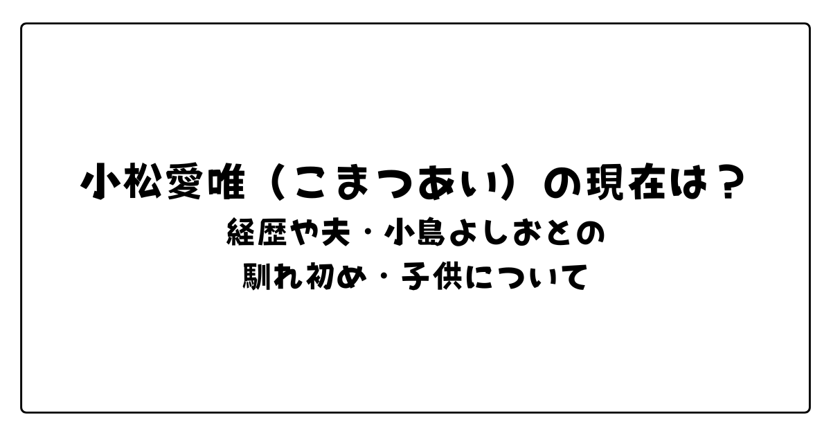 現在は表舞台から退かれているため、「今は何をしているの?」「小島よしおさんとはどうやって出会ったの?」と気になっている方も多いのではないでしょうか。