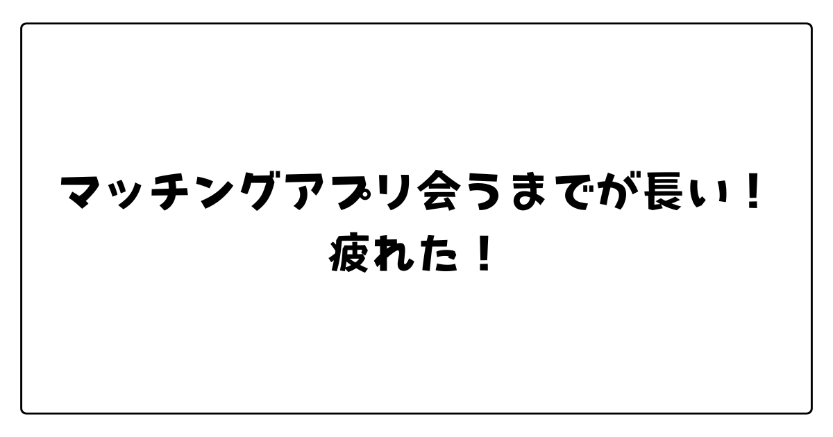 マッチングアプリで会うまでが長い問題について解説しました。