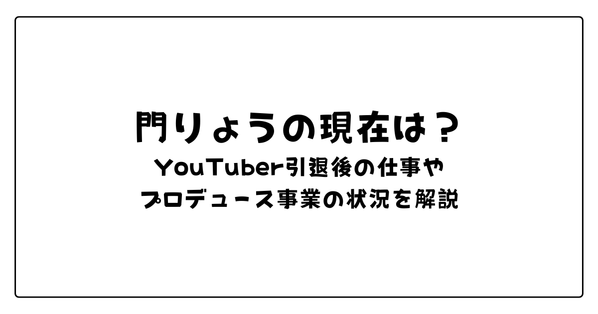 門りょうの現在は?YouTuber引退後の仕事やプロデュース事業の状況を解説