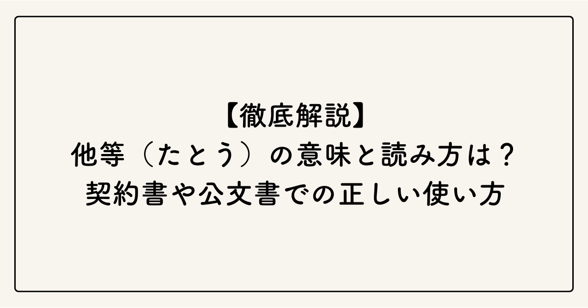 【徹底解説】他等(たとう)の意味と読み方は?契約書や公文書での正しい使い方