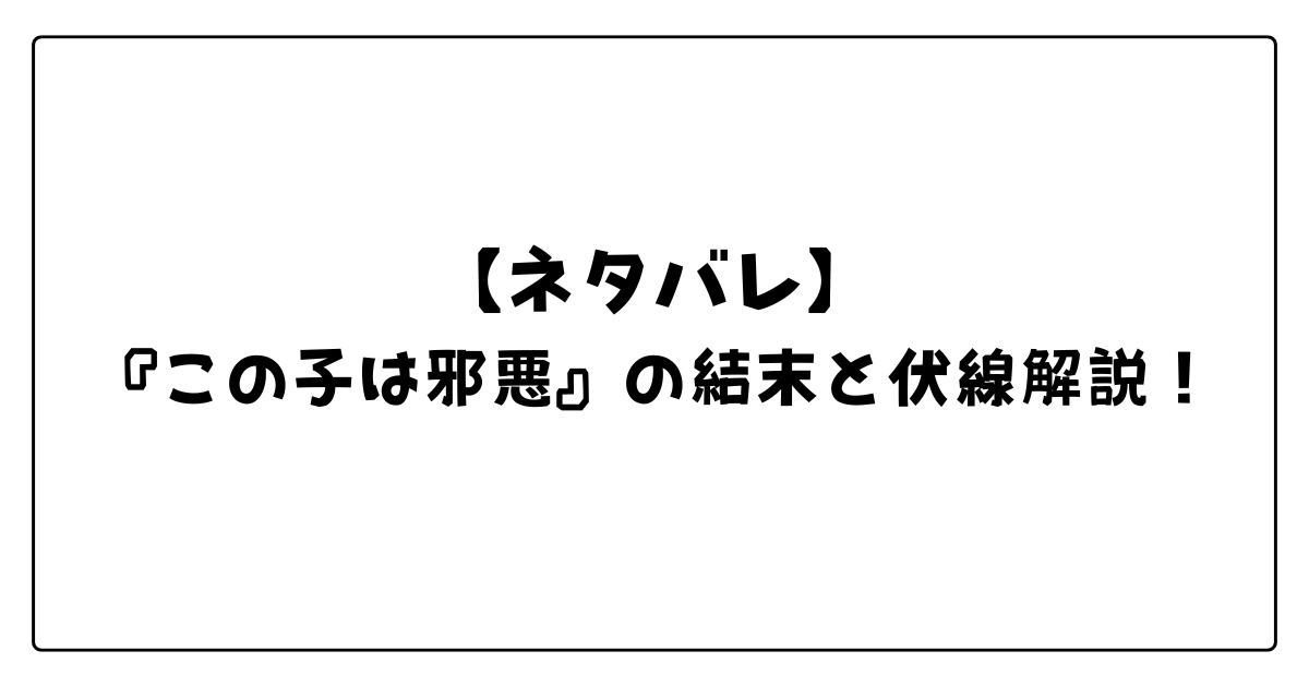 4. 衝撃のラスト!「この子は邪悪」の本当の意味とは?